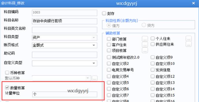 1、鼠標(biāo)點(diǎn)擊財(cái)務(wù)-會(huì)計(jì)科目,修改某個(gè)科目勾上數(shù)量核算,同時(shí)錄入計(jì)量單位并保存,如圖下: