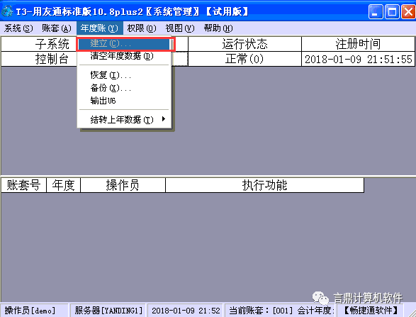 (3)點(diǎn)擊“年度賬"-建立,如圖下: